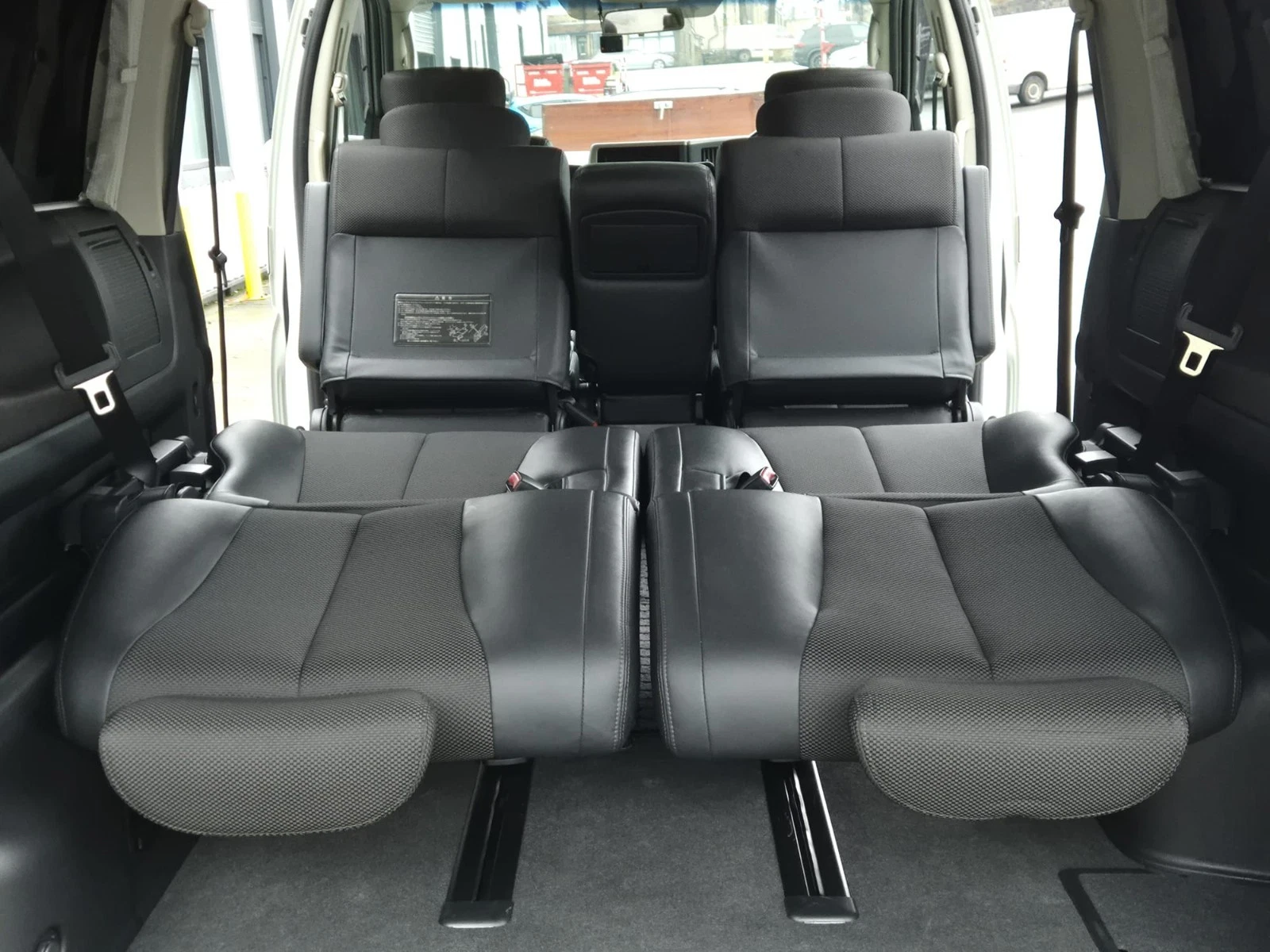All seats fold flat easy to sleep in can become a bed for camping.